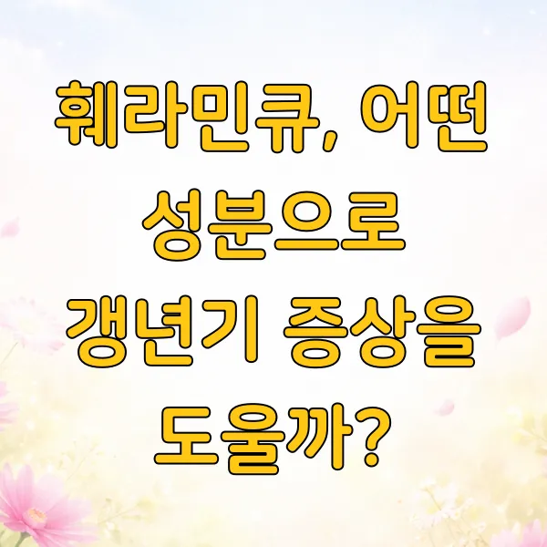 갱년기는 여성이라면 누구나 겪는 자연스러운 과정인데도, 갑작스러운 신체 변화 때문에 당황스럽기 마련이거든요. 얼굴이 화끈거리고 잠 못 이루는 밤이 반복되면 정말 힘들죠. 이럴 때 갱년기 증상 완화를 위해 훼라민큐를 고려하는 분들이 많으실 텐데요. 과연 훼라민큐가 어떤 도움을 줄 수 있고, 혹시 주의해야 할 점은 없는지 정확하게 짚고 넘어가는 게 중요하겠더라고요.